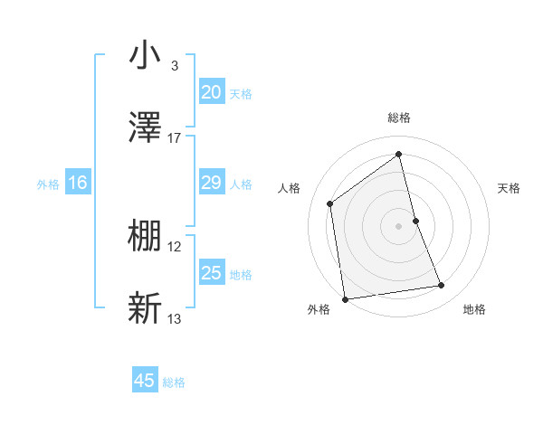 小澤 棚新さんを姓名の画数から五運を鑑定