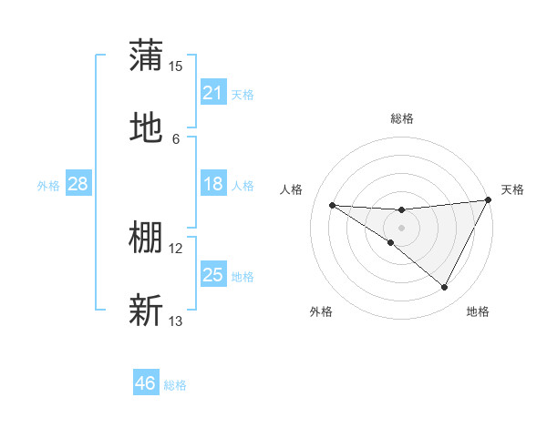 蒲地 棚新さんを姓名の画数から五運を鑑定