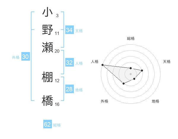 小野瀬 棚橋さんを姓名の画数から五運を鑑定
