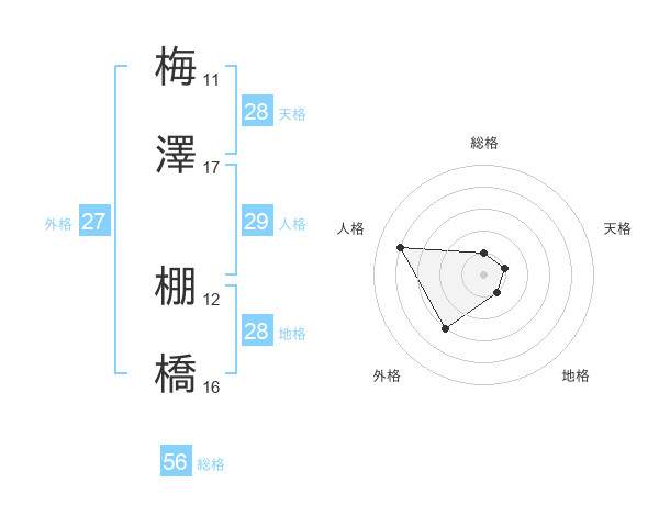 梅澤 棚橋さんを姓名の画数から五運を鑑定