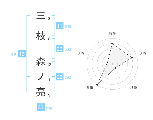 三枝 森ノ亮さんを姓名の画数から五運を鑑定