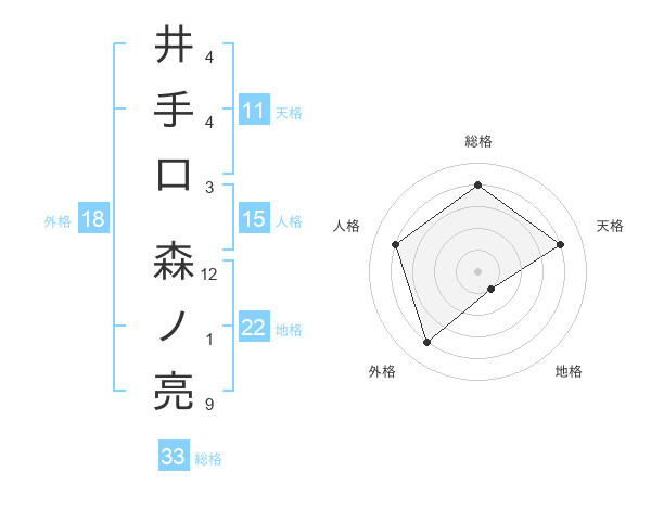 井手口 森ノ亮さんを姓名の画数から五運を鑑定