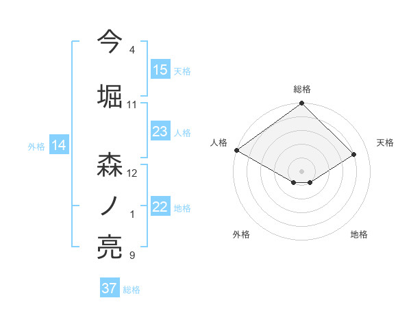 今堀 森ノ亮さんを姓名の画数から五運を鑑定