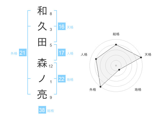 和久田 森ノ亮さんを姓名の画数から五運を鑑定