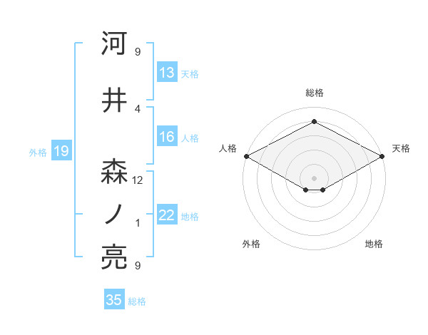 河井 森ノ亮さんを姓名の画数から五運を鑑定