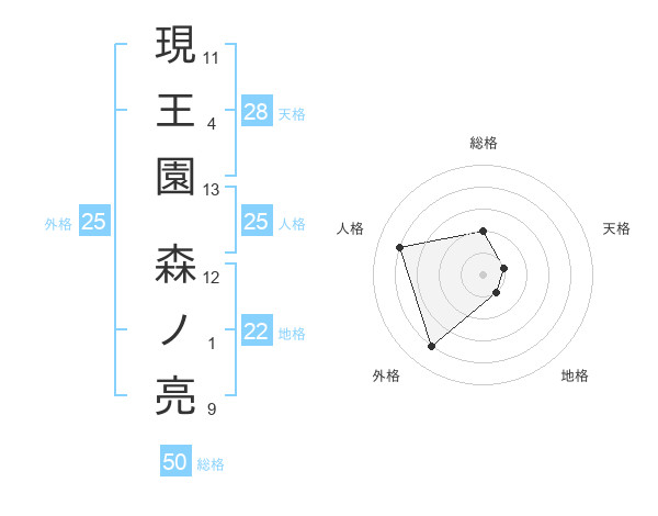 現王園 森ノ亮さんの総格は50画の2点!
