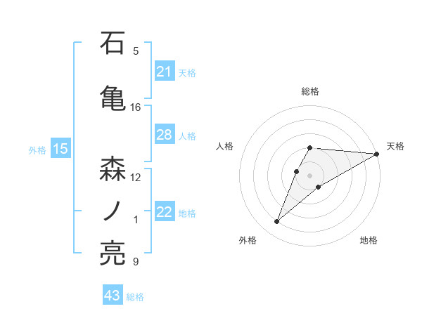 石亀 森ノ亮さんを姓名の画数から五運を鑑定