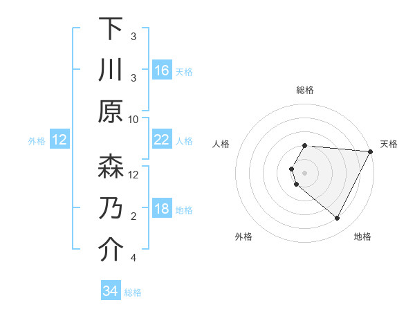 下川原 森乃介さんを姓名の画数から五運を鑑定
