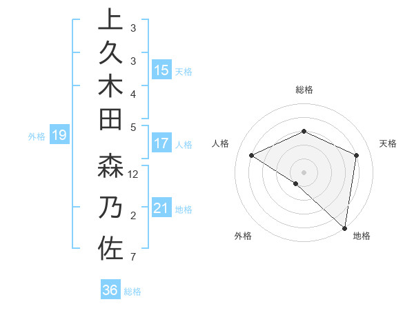 上久木田 森乃佐さんを姓名の画数から五運を鑑定
