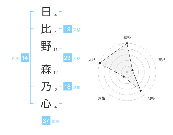 日比野 森乃心さんの総格は37画の5点!