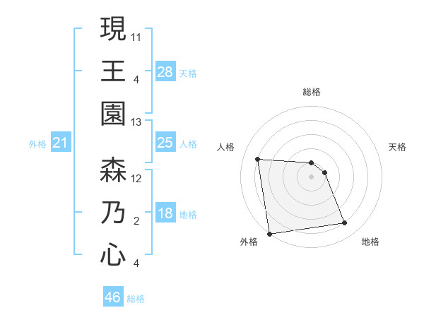 現王園 森乃心さんを姓名の画数から五運を鑑定