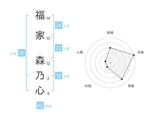 福家 森乃心さんを姓名の画数から五運を鑑定
