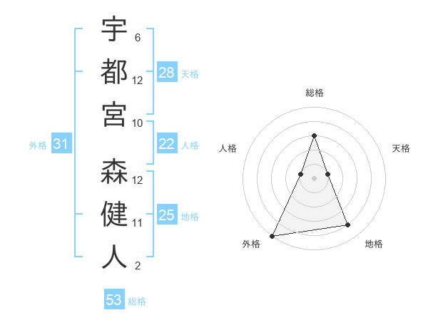 宇都宮 森健人さんを姓名の画数から五運を鑑定
