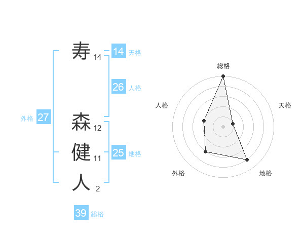 寿 森健人さんの総格は39画の5点!