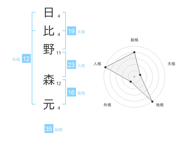 日比野 森元さんの総格は35画の4点!