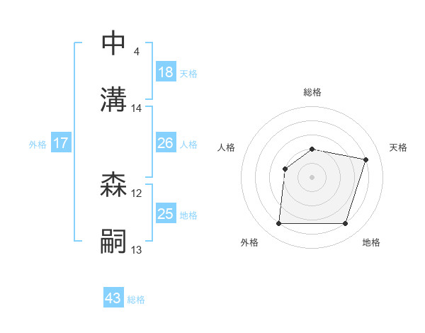 中溝 森嗣さんの地格は25画の4点!