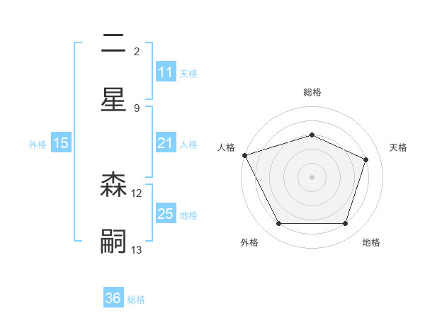 二星 森嗣さんを姓名の画数から五運を鑑定