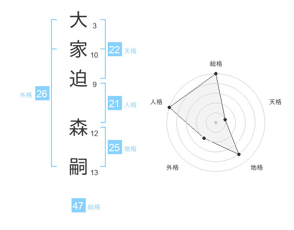大家迫 森嗣さんを姓名の画数から五運を鑑定