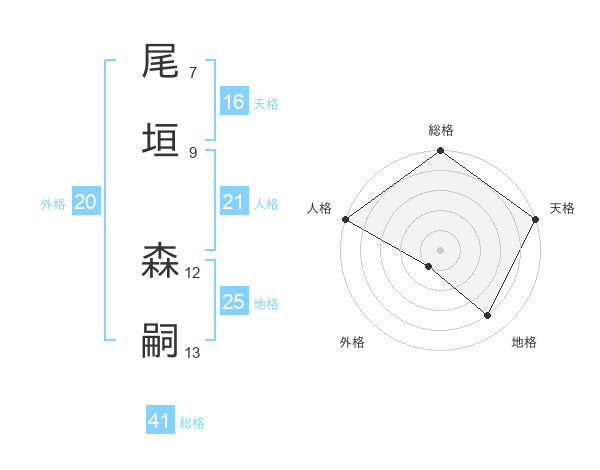 尾垣 森嗣さんの総格は41画の5点!