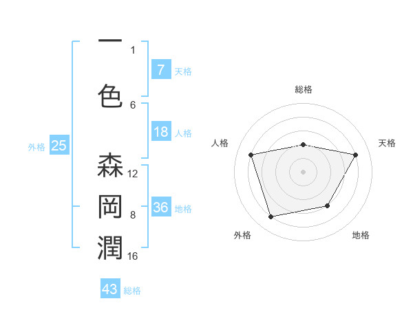 一色 森岡潤さんを姓名の画数から五運を鑑定