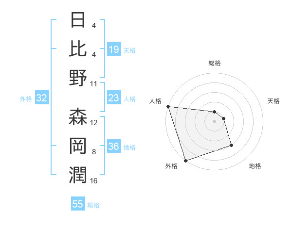 日比野 森岡潤さんを姓名の画数から五運を鑑定
