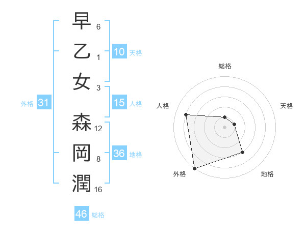 早乙女 森岡潤さんを姓名の画数から五運を鑑定