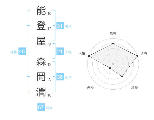 能登屋 森岡潤さんの総格は67画の4点!