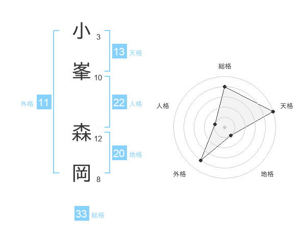 小峯 森岡さんを姓名の画数から五運を鑑定