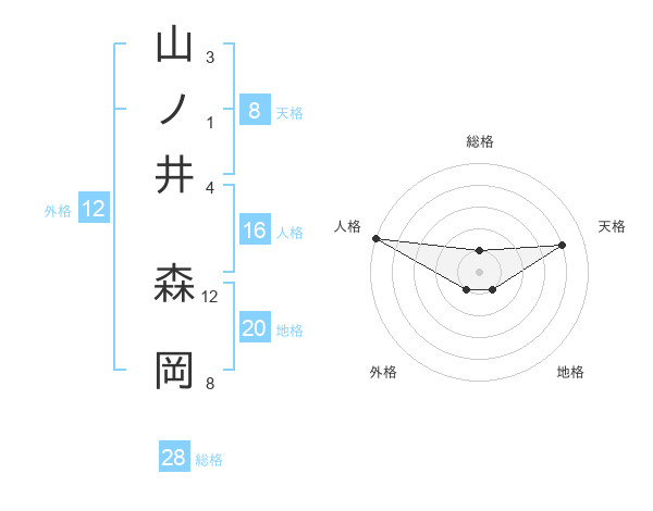 山ノ井 森岡さんを姓名の画数から五運を鑑定