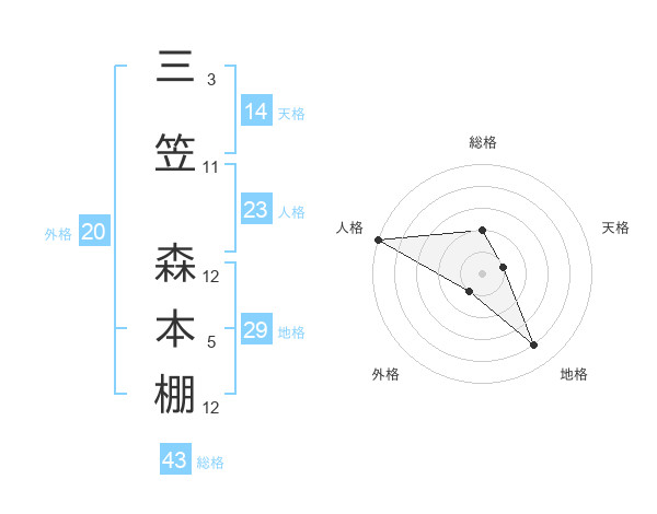 三笠 森本棚さんを姓名の画数から五運を鑑定