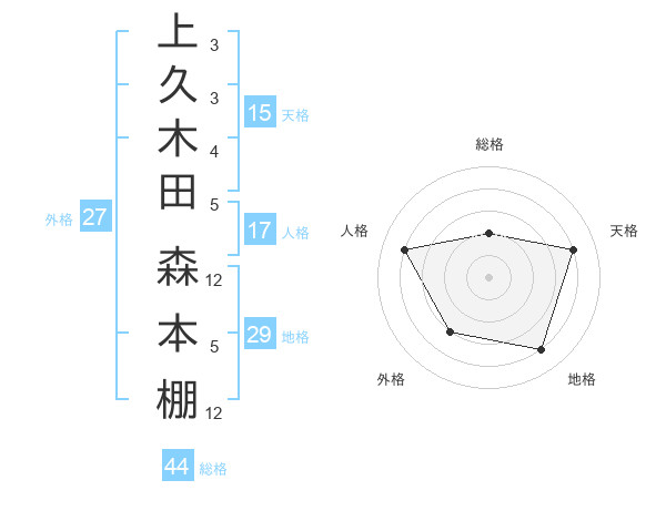 上久木田 森本棚さんを姓名の画数から五運を鑑定