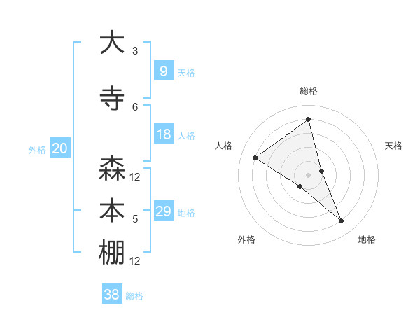 大寺 森本棚さんの総格は38画の4点!