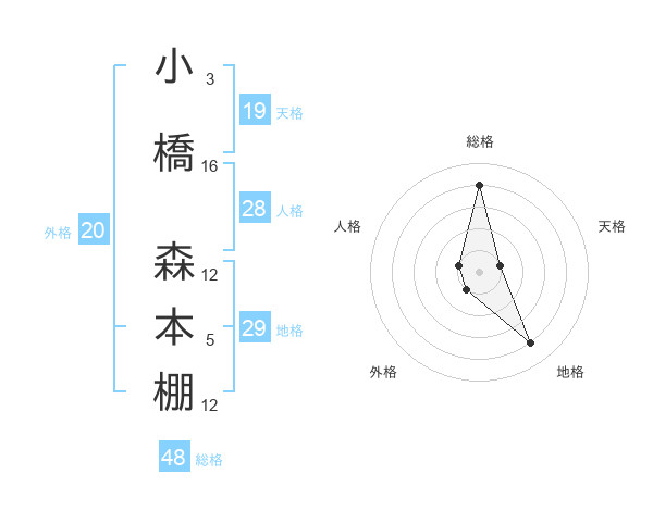 小橋 森本棚さんを姓名の画数から五運を鑑定
