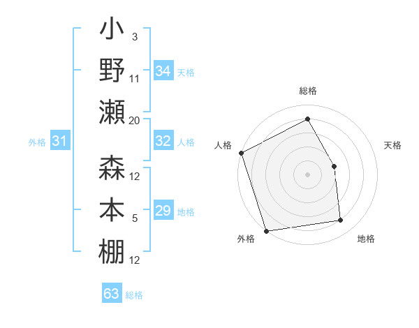 小野瀬 森本棚さんを姓名の画数から五運を鑑定