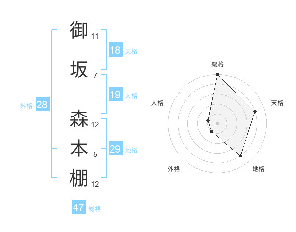 御坂 森本棚さんを姓名の画数から五運を鑑定