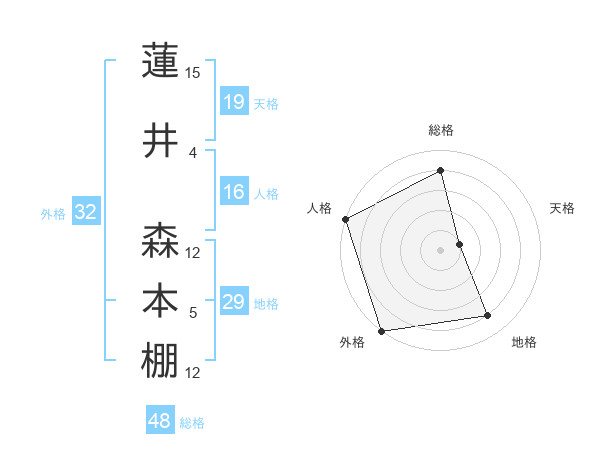蓮井 森本棚さんを姓名の画数から五運を鑑定