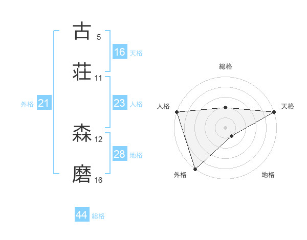 古荘 森磨さんを姓名の画数から五運を鑑定