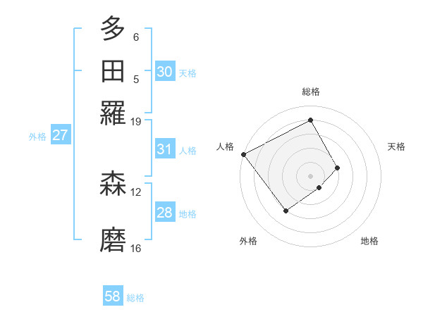 多田羅 森磨さんを姓名の画数から五運を鑑定