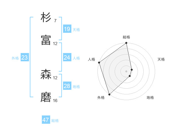 杉富 森磨さんを姓名の画数から五運を鑑定