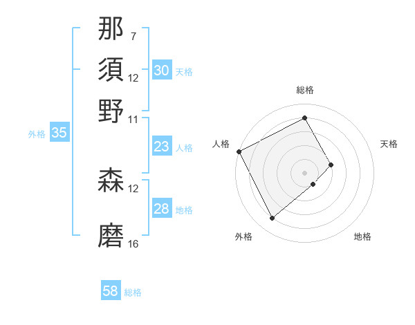 那須野 森磨さんを姓名の画数から五運を鑑定