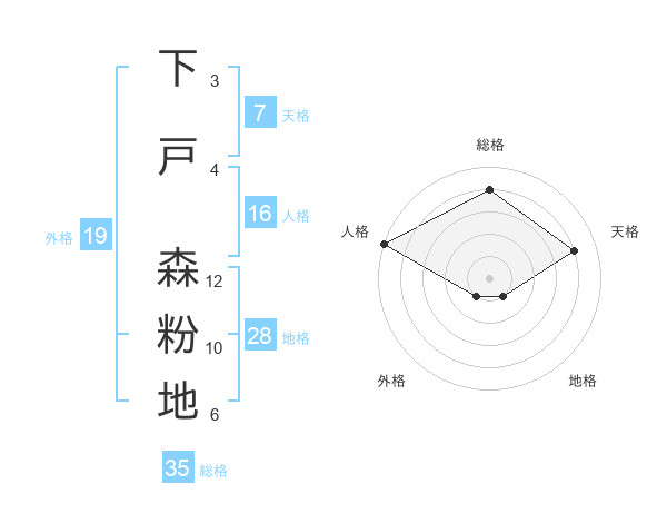 下戸 森粉地さんを姓名の画数から五運を鑑定