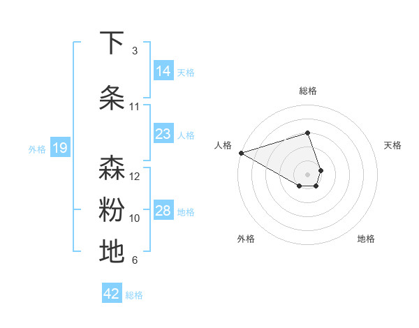 下条 森粉地さんを姓名の画数から五運を鑑定