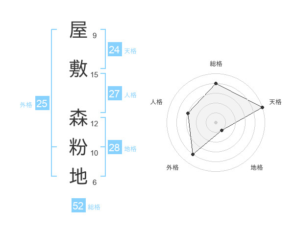 屋敷 森粉地さんの総格は52画の4点!