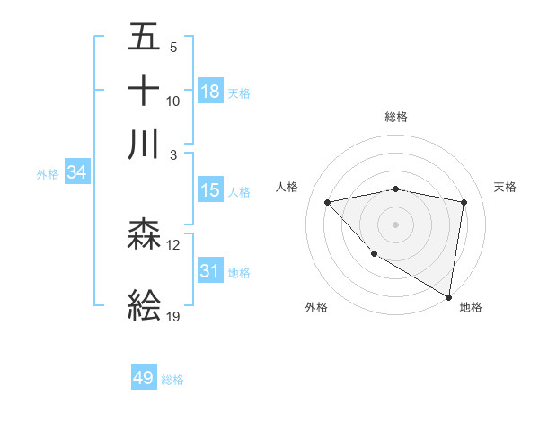 五十川 森絵さんを姓名の画数から五運を鑑定