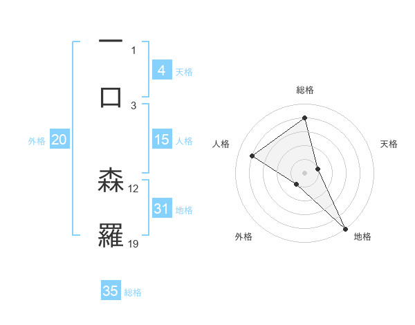 一口 森羅さんの総格は35画の4点!