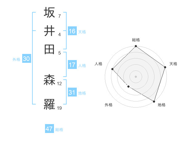 坂井田 森羅さんを姓名の画数から五運を鑑定