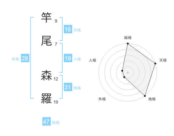 竿尾 森羅さんを姓名の画数から五運を鑑定