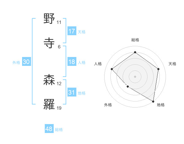 野寺 森羅さんを姓名の画数から五運を鑑定