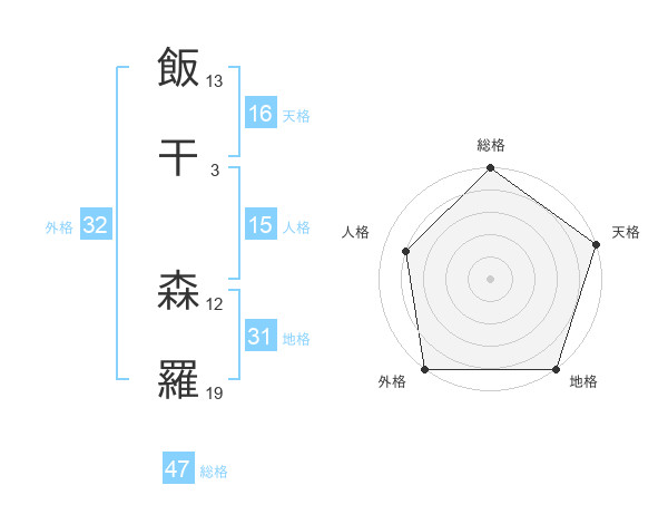 飯干 森羅さんの総格は47画の5点!