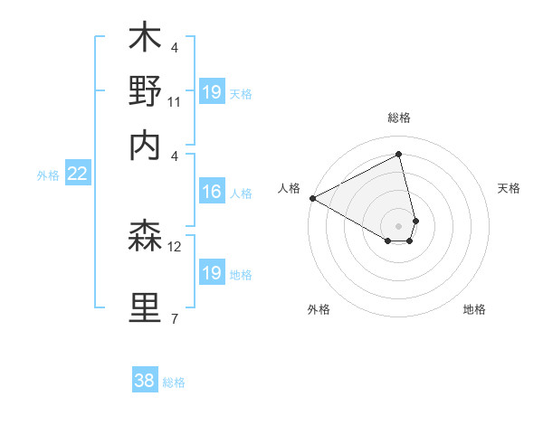 木野内 森里さんの総格は38画の4点
